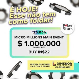É HOJE!!! Esse não tem como foldar!!! MICRO MILLIONS MAIN EVENT – $1.000.000,00 de dólares garantidos, por apenas $22!